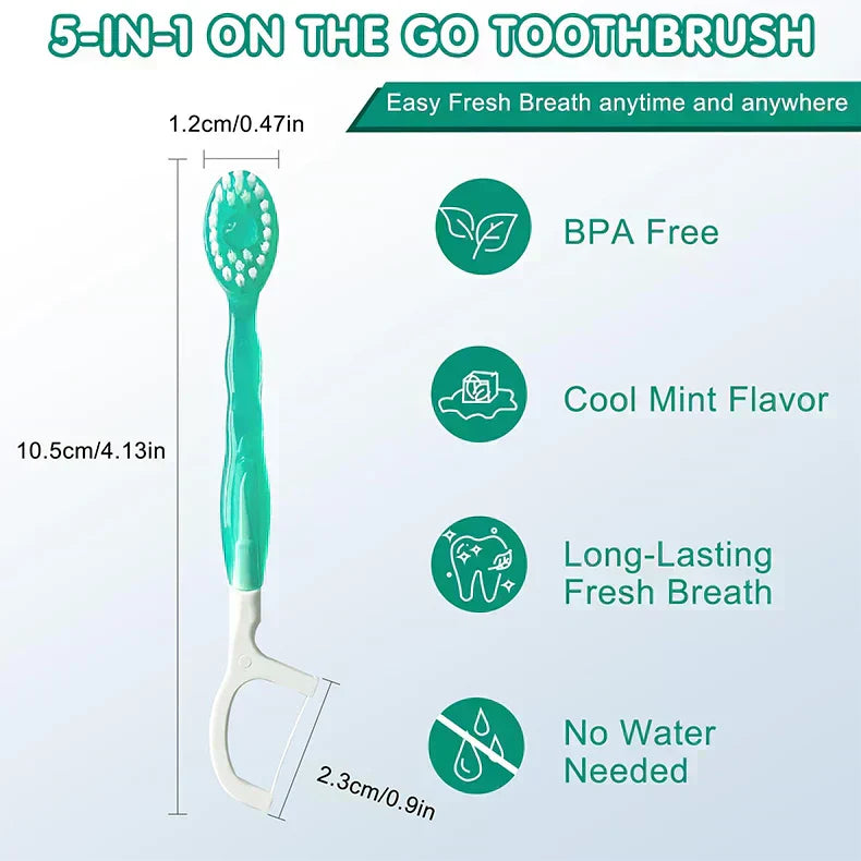 Experience ultimate dental care on-the-go with this compact multi-functional toothbrush. Its innovative design ensures you'll have everything you need for a fresh smile anytime, anywhere.